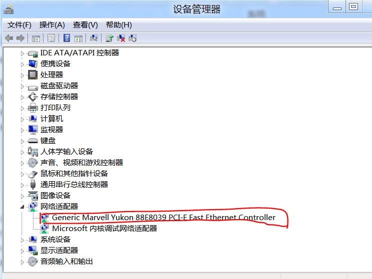 在这里稍微记一下这个名字。Marvell Yukon 88exxxxx PCI-E Fast Ethernet..